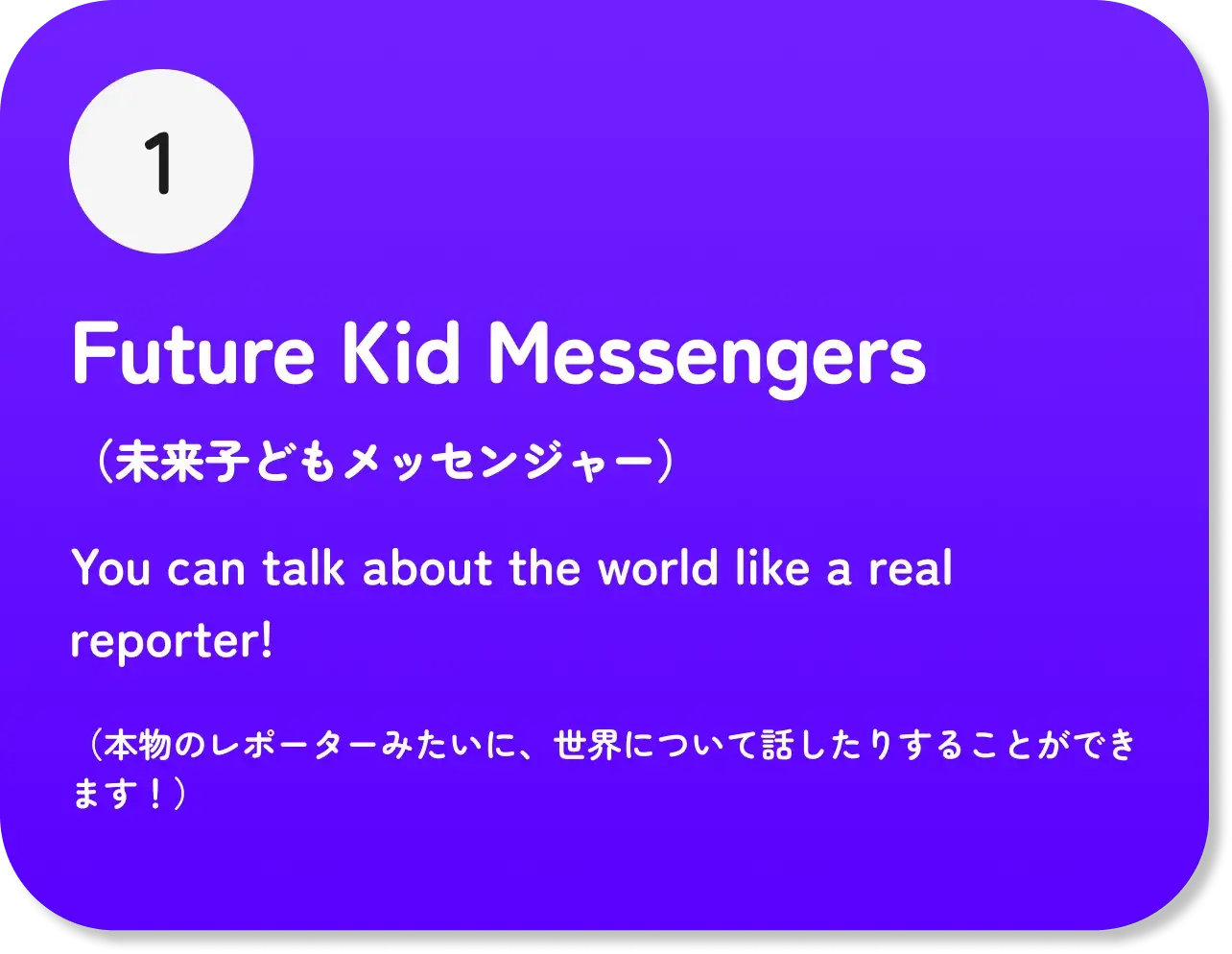 これからの時代を生きる子どもたちには、失敗を恐れず挑戦する力、そして広い世界を見る目を持ってほしいと願っています。