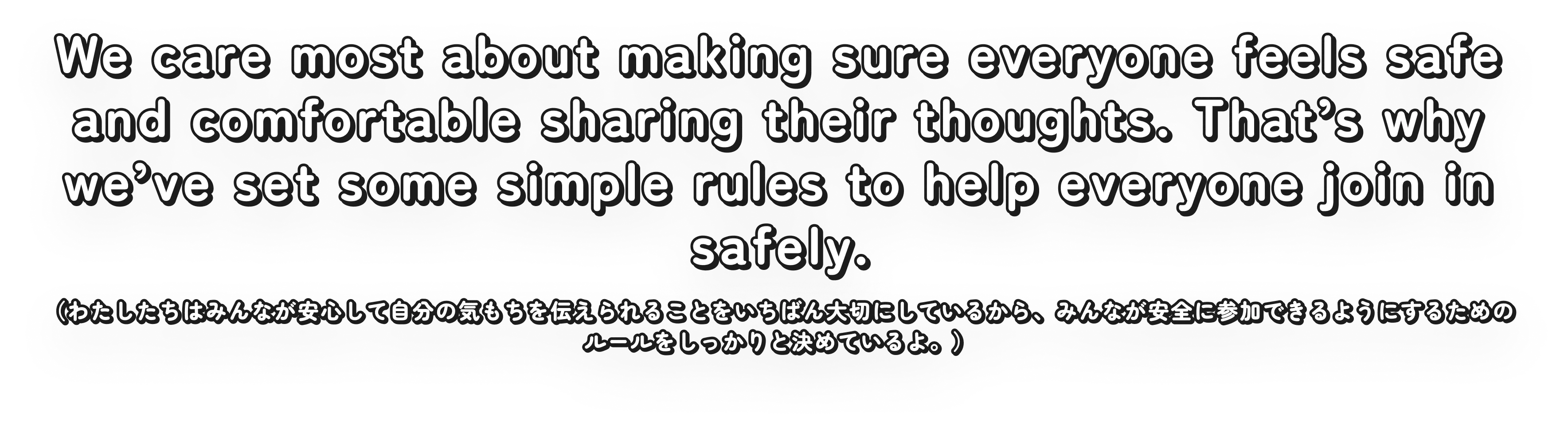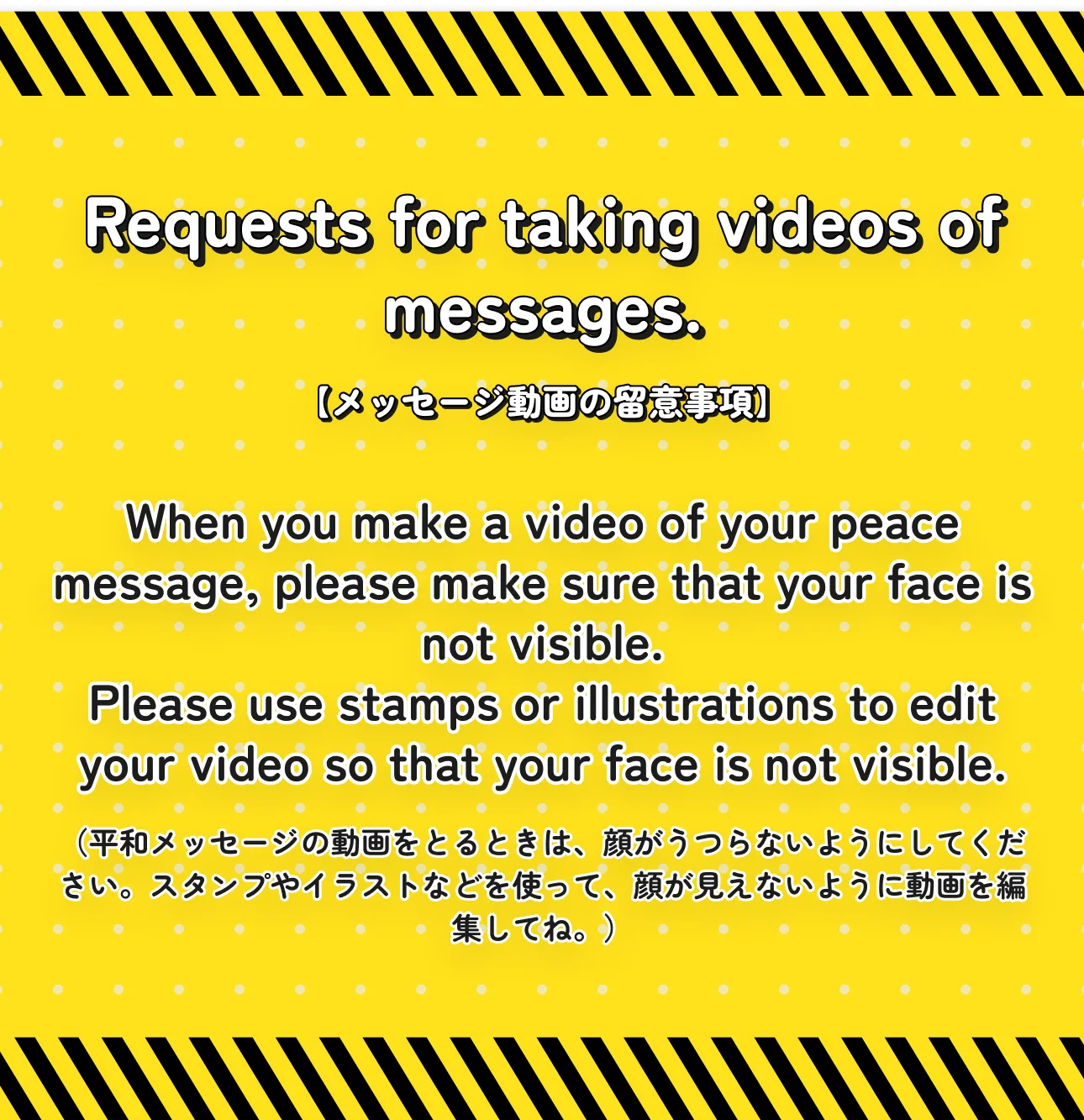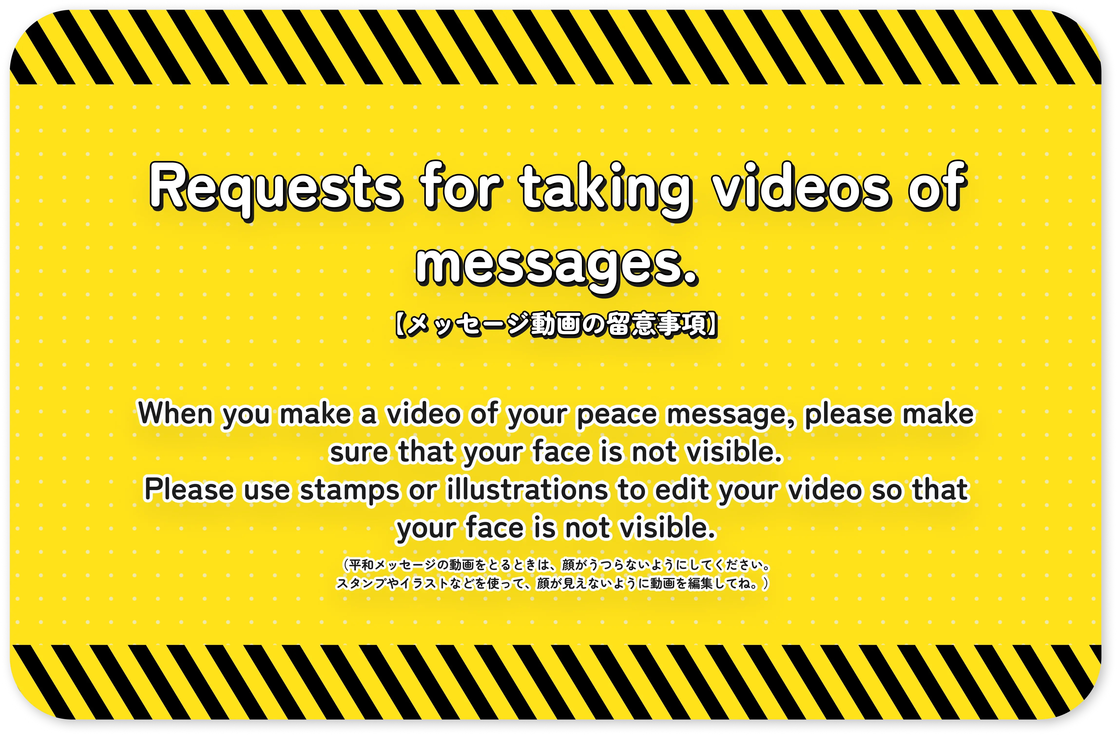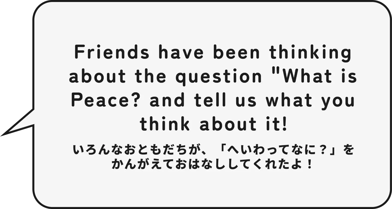 No need for complicated answers. When asked, "What is peace?" just share what comes to mind in your own words. (難しいことはいりません。「平和ってなに?」と聞かれて思ったことを、そのまま自分の言葉で伝えてください。)